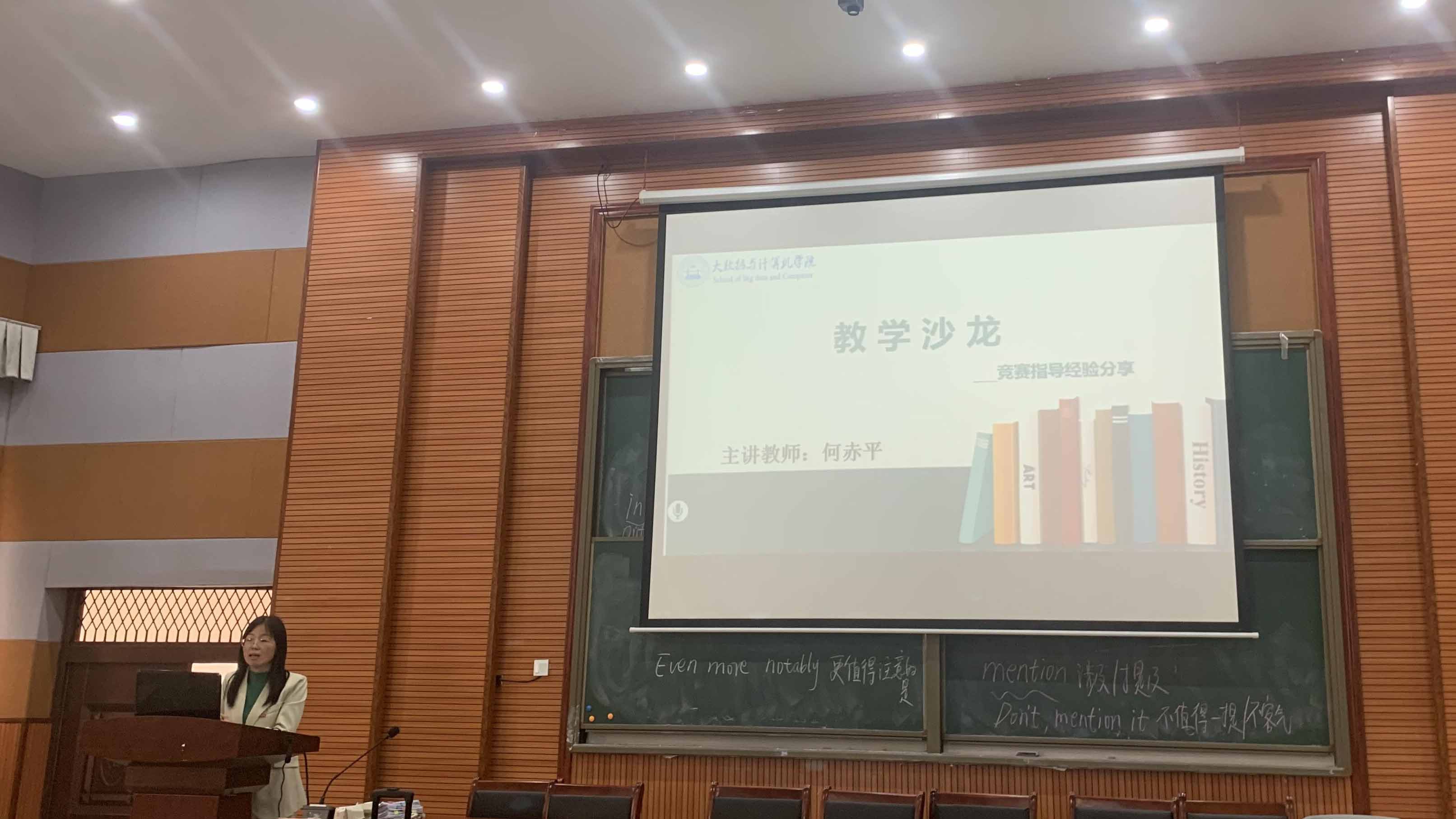 何赤平老师展示了自己指导的员工所获得的各类竞赛获奖作品,并表示获得这些奖项离不开学校的支持、学院领导的重视、每位老师的通力合作以及员工的积极参与。何老师分享着自身经验,告诉老师们教学方面学无止境,要将竞赛精神融入平时的教学中,让自己和员工们一起在一次次的挑战中提高自己的能力。