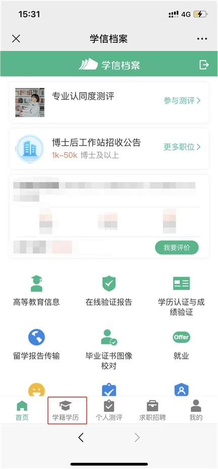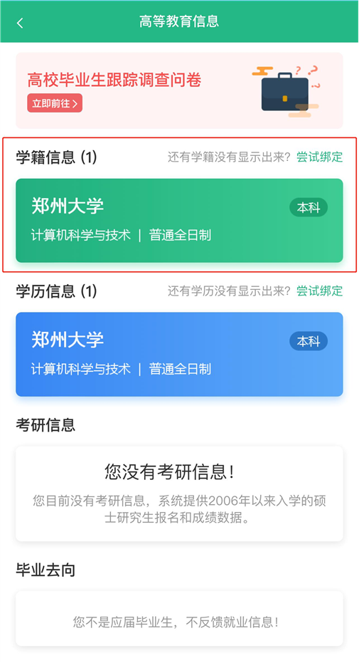 1.登录学信网 APP,点击“学籍查询”,查看学籍学历信息