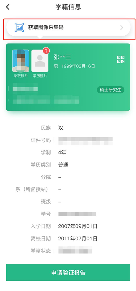 2.选择学籍,查看对应采集码
