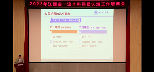 10月25号团队成员参加江西省一流本科课程认定工作培训会,由南昌大学许祥云教授主讲关于“四类”一流课程申报要点,超星集团责任编辑付恬详细介绍项目申报平台操作说明。