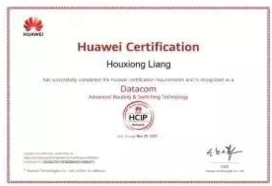 华为HCIP-Datacom认证:培训和认证在数据通信领域具备独立进行中小型网络规划设计、部署和运维的能力的高级工程师。华为HCIP-Datacom是华为公司推出的华为认证ICT高级工程师,是华为认证体系的中级认证,在国内有很高的知名度和认可度,在一线城市月工资可以达到8K以上。