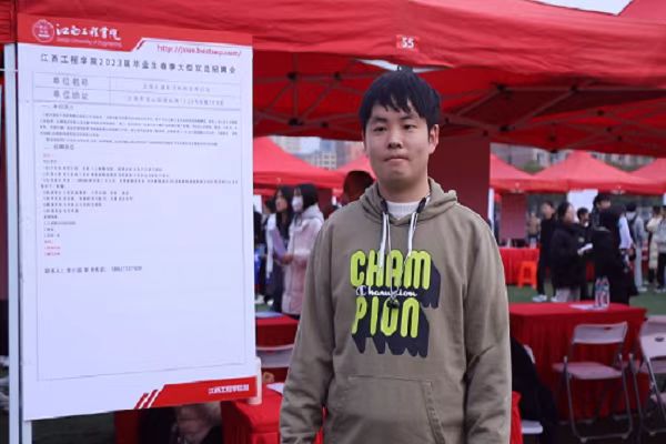 抱石艺术学院2019级环境设计本科1班陈杨文在接受采访时表示,此次双选招聘会来的企业很多,选择很多样化,自己想要从事的工作选择也很多。通过企业现场招聘,对就业环境和个人市场竞争力有了更深地了解,疫情过后经济在复苏,就业机会也会俱时增加。