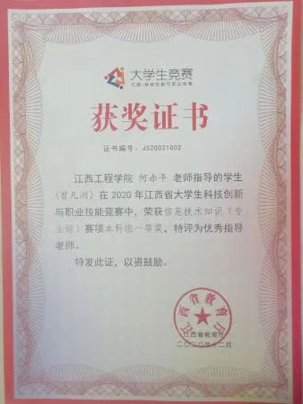 何赤平,女,安徽安庆人,中共党员,硕士学位,毕业于云南大学软件工程专业,现任大数据与计算机学院软件工程教研室主任。主要担任Java程序设计、数据结构、数据库原理等课程教学。2020年申报建设软件工程教学应用团队,2021年申报建设软件工程一流本科专业等。2009以来一直担任“江西省老员工信息技术知识赛”指导老师,团体连年蝉冠,被评为“优秀指导老师”。