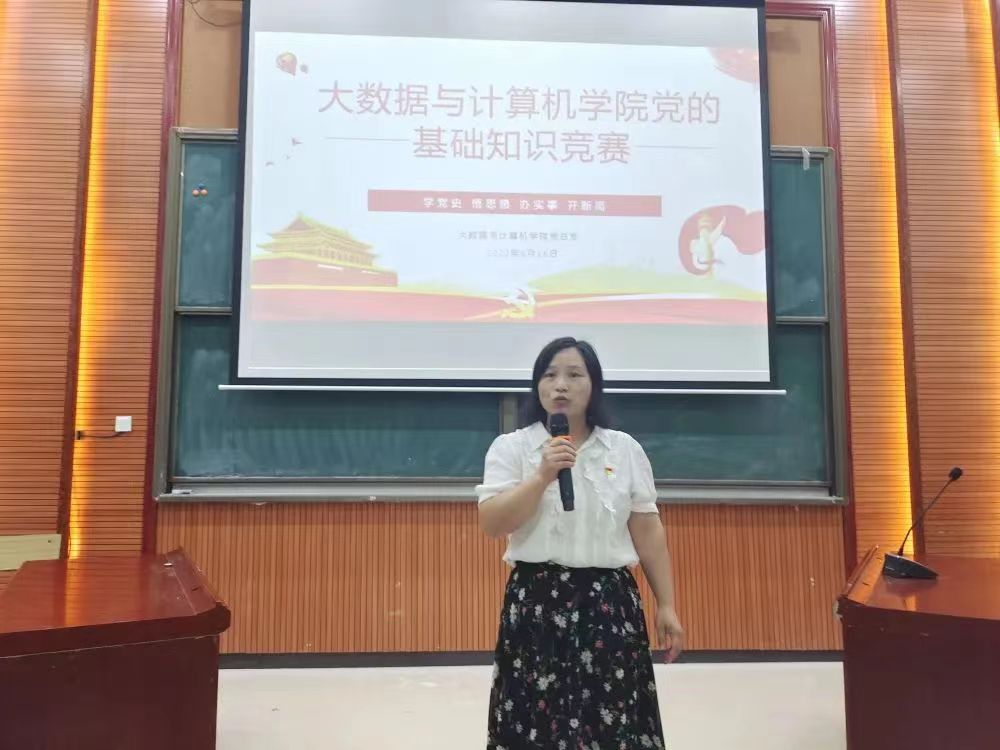 6月16日晚,大数据与计算机学院开展"党的基础知识竞赛"比赛。本次竞赛旨在进一步提升入党积极分子的党史基础理论知识。本次比赛由大数据与计算机学院员工党支部书记胡木兰,辅导员魏玮,程海霞担任评委。