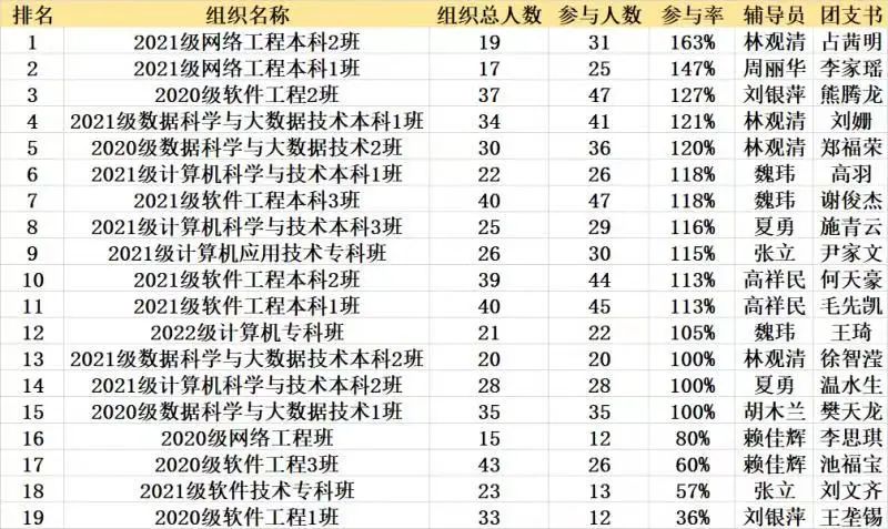 大数据与计算机学院第七期青年大学习各班学习情况