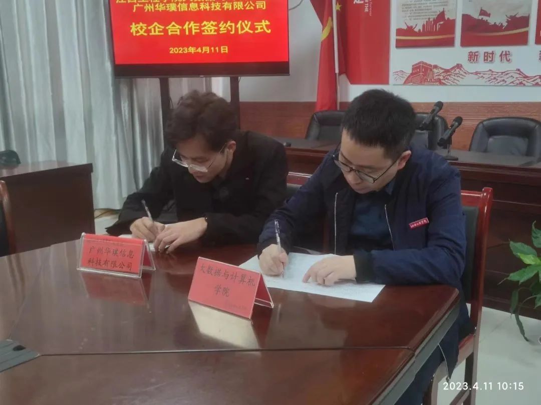 最后,大数据与计算机学院经理巢喜剑与广州华璞科技信息有限公司签订校企合作协议。双方一致认同校企合作对促进企业发展和学校人才培养发挥着重要作用,是互利互惠、合作双赢的好事。