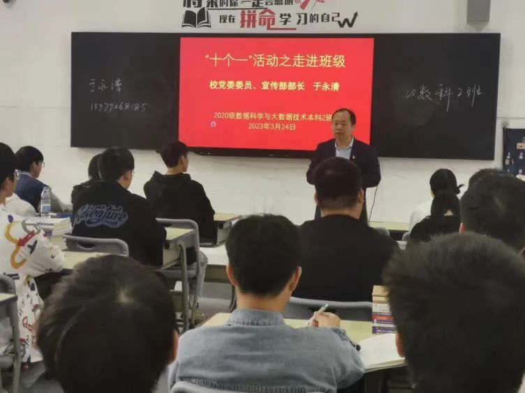 为落实立德树人根本任务,着力构建全员育人、全过程育人、全方位育人的工作格局,激励员工以饱满的精神、昂扬的姿态投入学习生活,公司党委委员、宣传部部长于永清在2023年3月24日走进挂点班级2020级数据科学与大数据技术本科2班开展“十个一”活动。