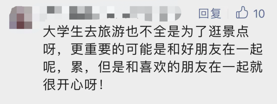也有网友表示,“特种兵式旅游”虽然行程局促,却能为青春留下更多的记忆,“虽然身体很累,但精神上得到了满足。”