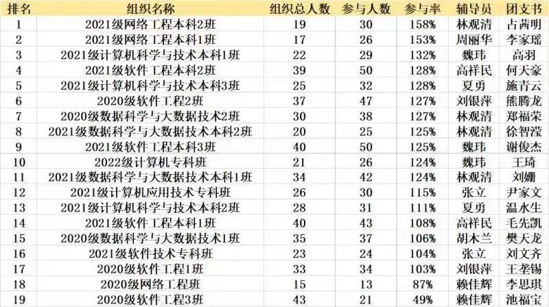 大数据与计算机学院第八期青年大学习各班学习情况