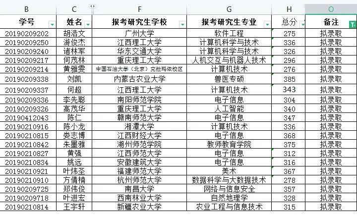 有这样一个班级,班级30多名员工,其中6人被湘潭大学、新疆农业大学、江西师范大学、江西财经大学等院校拟录取,这个班级就是2019级数据科学与大数据技术本科1班,“最牛考研班级”实至名归!