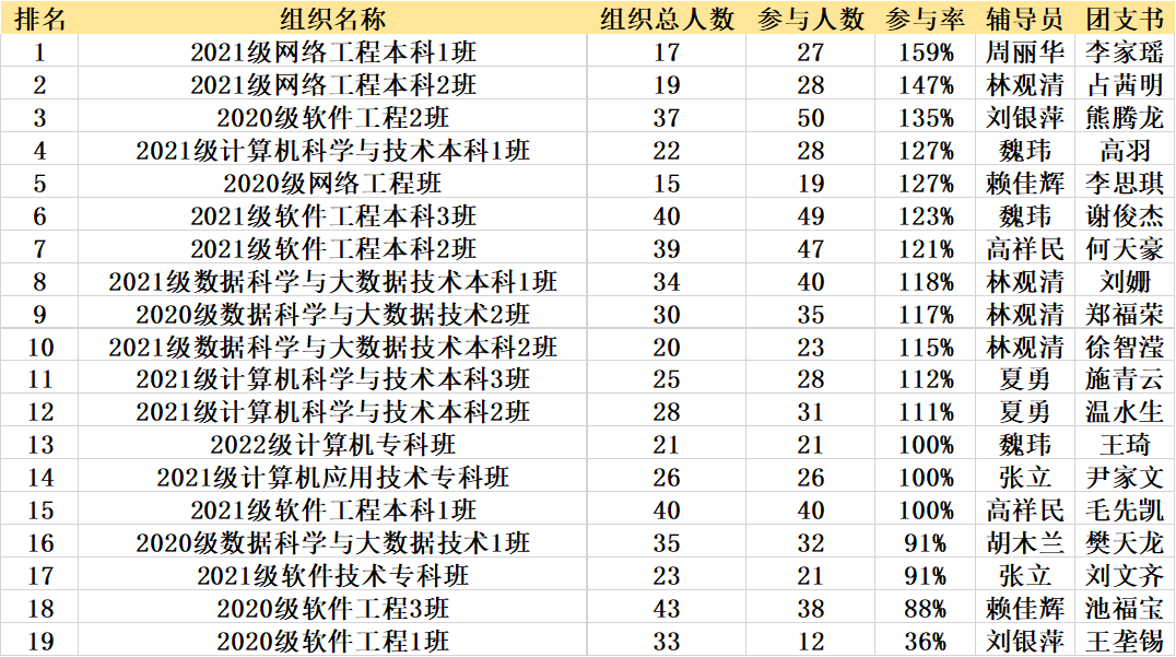 大数据与计算机学院2023年第十期青年大学习各班学习情况