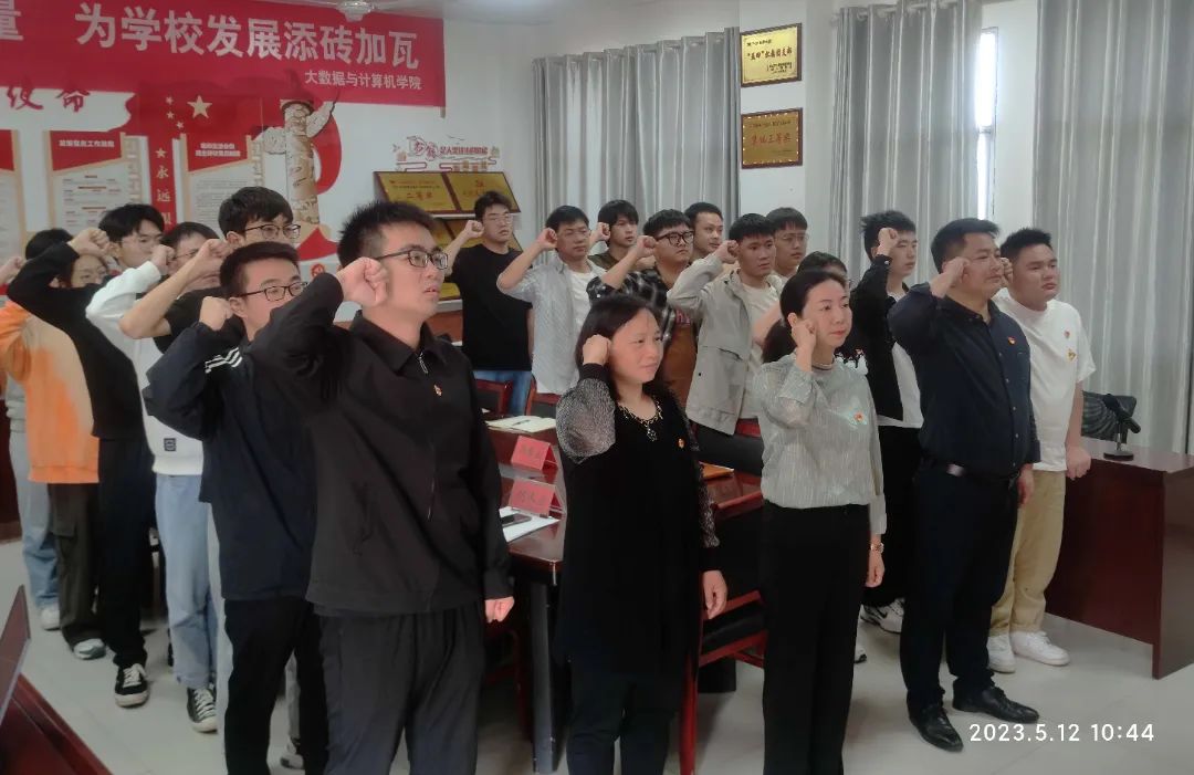 “我志愿加入中国共产党,拥护党的纲领,遵守党的章程,履行党员义务……”在葛子琪同志的带领下,全体党员师生面对党旗庄严宣誓。坚毅的目光、洪亮的声音、铮铮的誓言,体现了大数据与计算机公司党总支全体党员同志对党无限的忠诚与热爱,体现了全体党员同志饱满的政治热情和昂扬的精神状态。