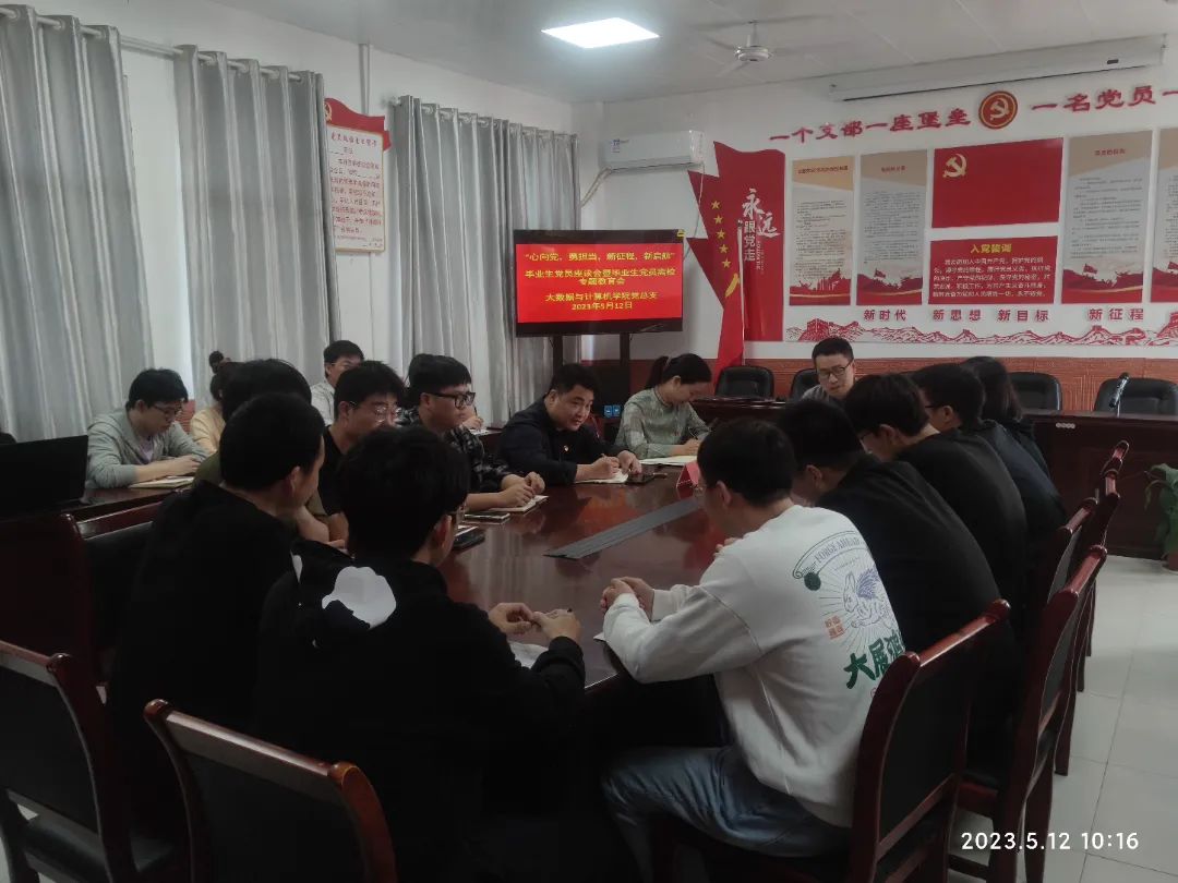 为使广大毕业生党员更好的走向工作岗位,发挥党员的先进模范作用,5月11日下午公司在B504开展了“心向党,勇担当,新征程,新启航”毕业生党员座谈会暨毕业生党员离校专题教育会。大数据与计算机学院经理巢喜剑,党总支书记王娟,员工党支部书记胡木兰,以及全体2023届毕业生党员参加本次会议。会议由党总支副书记郑智山主持。