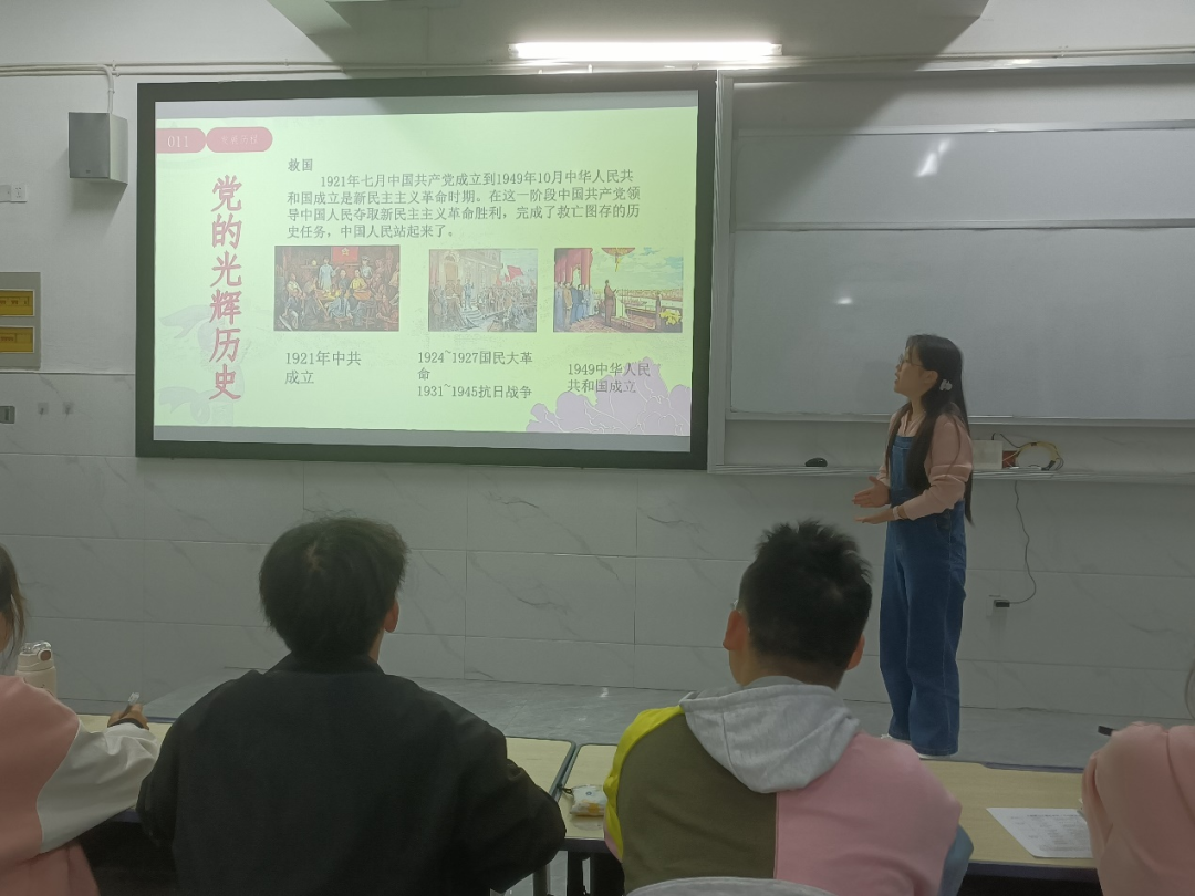 第二位选手是来自21级网络工程本科一班的吴嘉丽,她带领我们重温的党的光辉历史,中国百年奋斗历程中,凝聚伟大建党精神以及在此基础上形成的中国共产党人的精神谱系;探索贯穿于革命、建设、改革和新时代各个时期的中国道路,在这一光辉历程中,中华民族迎来了从站起来、富起来到强起来的伟大飞跃,实现中华民族伟大复兴进入了不可逆转的历史进程。接着,她以李大钊《青春》里的“以青春之我,创建青春之家庭,青春之国家,青春之民族,青春之人类,青春之地球,青春之宇宙,资以乐其无涯之生“指出,我们青年员工要不负时代,为实现中华民族伟大复兴贡献青春力量。