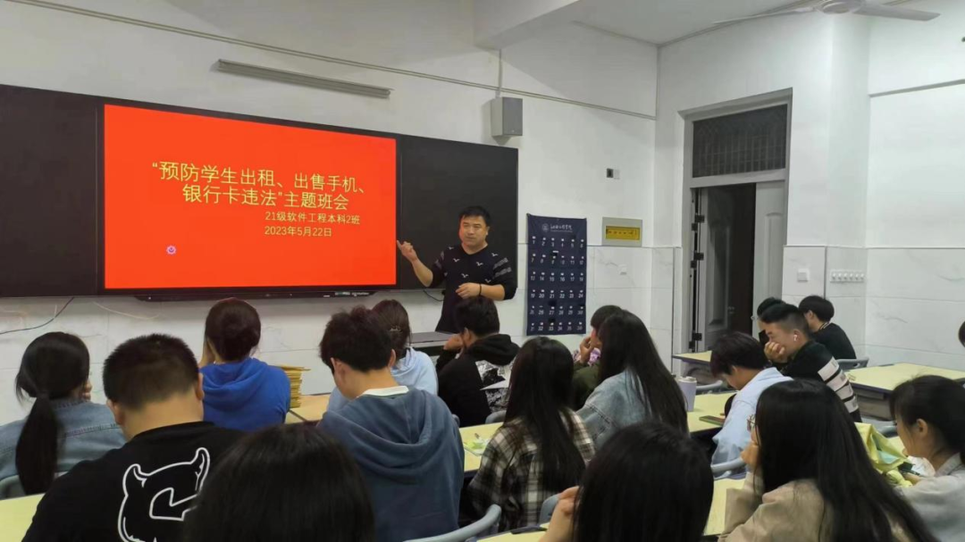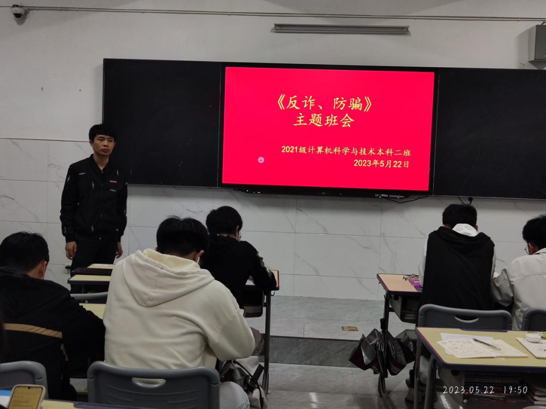 高祥民老师在2021级软件工程本科1班召开《预防手机出租,出售“手机、银行卡”违法》主题班会,他表示在现如今的社会,诈骗案件越来越多,手段也越来越高明。并为使同学们熟悉生活中常见的诈骗形式,在此次班会上,通过实时讲解新型骗局、视频播放等形式开展防电信诈骗宣传活动,提醒同学们在遇到诈骗现象时应如何有效应对,进一步提高了同学们自我预防、自我保护、自我应对诈骗的能力,提升了同学们的防骗意识。