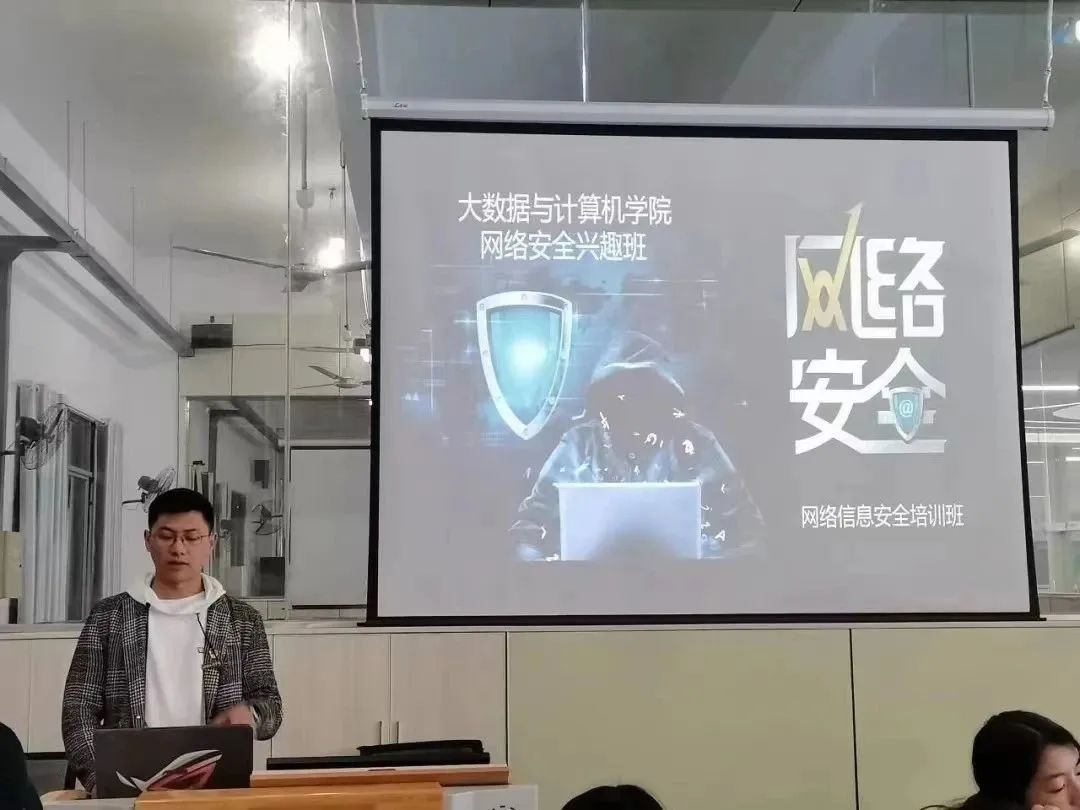 2021年11月为践行大数据与计算机学院的教学特色“以赛促学,以赛促教”,营造良好的学习氛围,在公司开设了网络安全兴趣班,采用传帮带的模式进行学习,以员工带员工一起学习一起交流学习方法等。积极担任网络安全培训班的带头人与新同学一起分享经验。