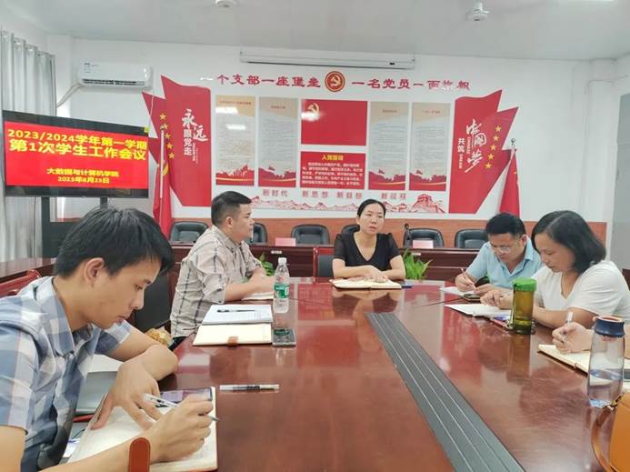 为做好新学期员工工作,确保2023年秋季新学期员工开学工作有条不紊进行,全面部署开学员工管理工作,推动新学期员工工作再上新台阶、再创新佳绩。大数据与计算机学院于8月23日在B504会议室,召开“2023-2024学年第一学期第一次员工工作会议”,会议由公司党总支书记王娟主持,全体辅导员班主任参加次会议。
