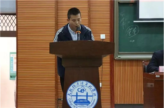 紧接着优秀教师柴政、学院贡献奖朱燕琴、创新创业大赛获奖者陈哲陆续发言,他们对自己这一学期的工作和学习进行了总结与思考,给大家讲述了感受与其中的艰辛,并对学院师生提出希望并给予鼓励。