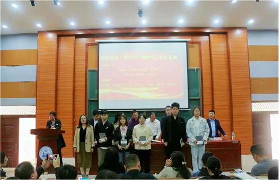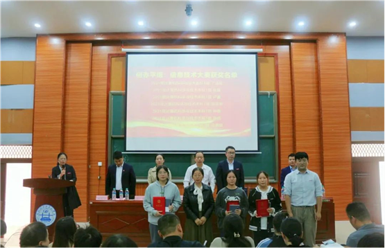 大会第四项:伍琴兰宣读参赛获奖名单(老员工程序设计大赛、网络安全攻防大赛、Python创意编程、网页设计大赛、信息技术大赛、华为ICT和新华三大赛),进行颁奖