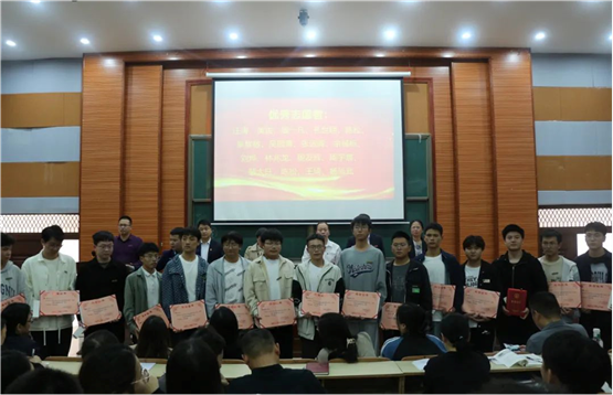 大会第六项:林稳宣读贡献奖名单、优秀团学班干部名单、志愿者名单,进行颁奖