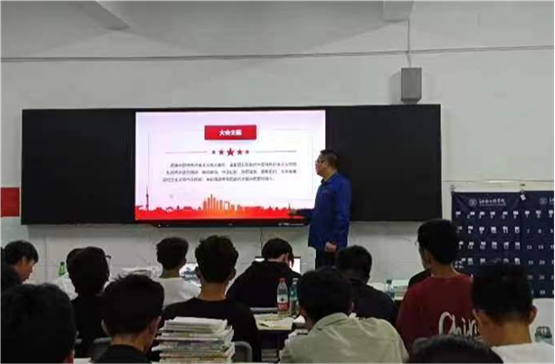 随后,其余团学干部纷纷按时到达所指定班级,通过讲述、沉浸场景、互动交流等形式,带领同学们全方位学习党的二十大精神的重要意义和丰富内涵,并对同学们提出要牢记习近平总书记的嘱托,以新时代好青年应有的姿态,奋进新征程,诠释新使命,创造新业绩。