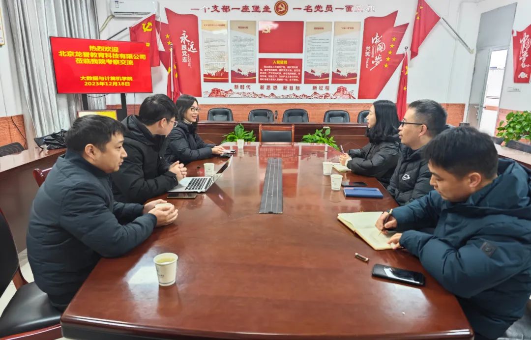 12月18日,北京龙誉教育科技有限公司江西分公司负责人一行莅临大数据与计算机学院考察交流。公司经理巢喜剑、党总支书记王娟等学院领导热情接待并全程陪同。