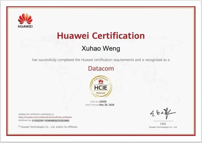 值得一提的是,公司华为ict产业学院已经培育出通过各类华为ICT认证的同学,20余名同学成功考取华为HCIP高级工程师证书,60余名同学考取华为HCIA工程师证书,同时带动了周围一大批同学共同进步。
