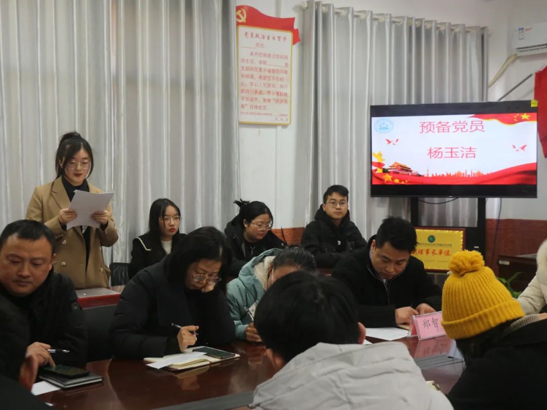 介绍人胡木兰老师表示是杨玉洁同学有优秀的两个方面。一是政治思想上进步。在预备党员期间,自觉认真地学习政治理论,提高了自己政治理论修养。二是学习素质提升。她注重理论学习和实践,取得了优异的成绩。把科学发展观有机地融入到学习中。其已经具备共产党员的条件,愿意介绍其加入中国共产党。最终杨玉洁同学以全票通过顺利转正。