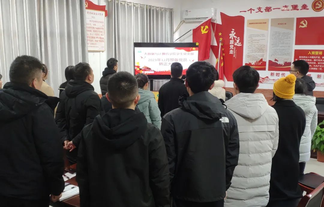 为扎实做好党员发展工作,进一步加强党员队伍建设,加强支部凝聚力,增强党员队伍的生机与活力。2023年12月29日,大数据与计算机学院在仙女湖校区B504召开了“预备党员转正”大会。出席会议的有大数据与计算机学院经理巢喜剑、党总支书记王娟等全体党员和2022年预备党员廖舒、杨玉洁。列席人员有彭凤、施青云。