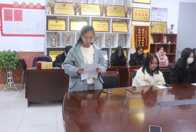 大会第四项:王娟书记发言讲话。首先对新媒体运营中心的各位成员的付出给予肯定,所谓万事开头难,新的一年有新的挑战,在困难的时期不断发展壮大,同时也感谢在郑智山副书记的带领下克服万难,创造佳绩。紧接着,她对新的一年提出新的要求,希望大家能够在新的一年里各位成员认真完成本职工作,讲好学院故事,传递学院正能量。作为大数据与计算机学院的一员要承担并延续其工作,学习各种知识,掌握各项技能,成为更优秀的大数据学院的一份子。