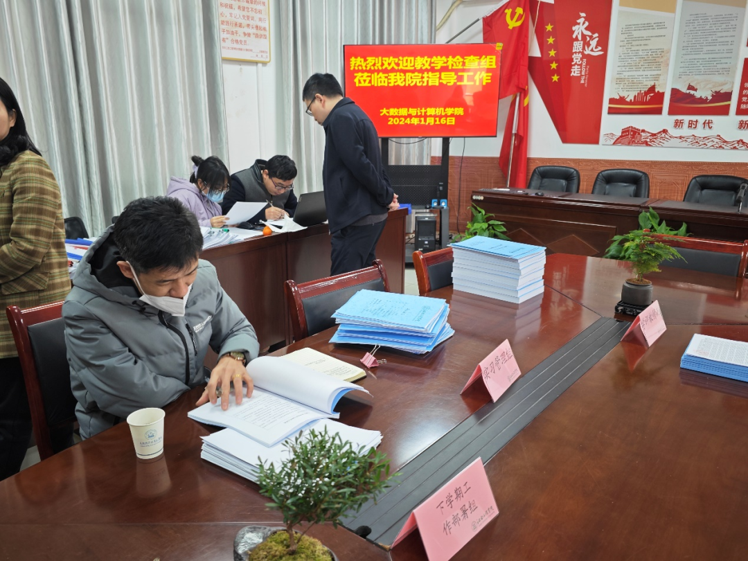 教学工作是学校的中心工作,教学质量是学校的生命线。期末考试将近,为进一步加强学校教学常规管理,督促教师认真做好各项公司产品工作,确保教学常规工作的扎实推进,客观评价教师的工作实绩,2024年1月16日教学检查组莅临大数据与计算机学院,在B504开展了期末教学检查活动。