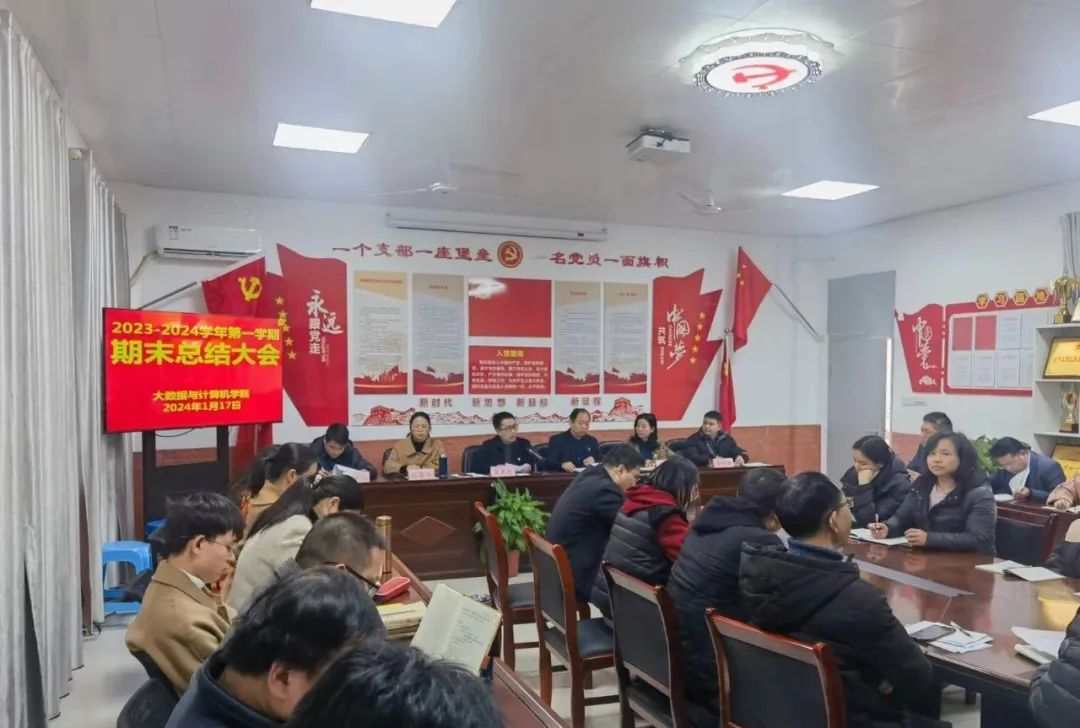 为了总结本学期的各项工作,促进学院发展,大数据与计算机学院于2024年1月17日在B504召开“期末总结大会”。大会由公司党委委员、宣传部部长于永清,学院经理巢喜剑,党总支书记王娟,副经理伍琴兰,党总支副书记郑智山,办公室主任黄竹明以及公司全体教师参加。