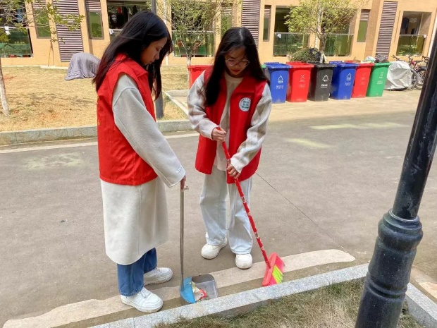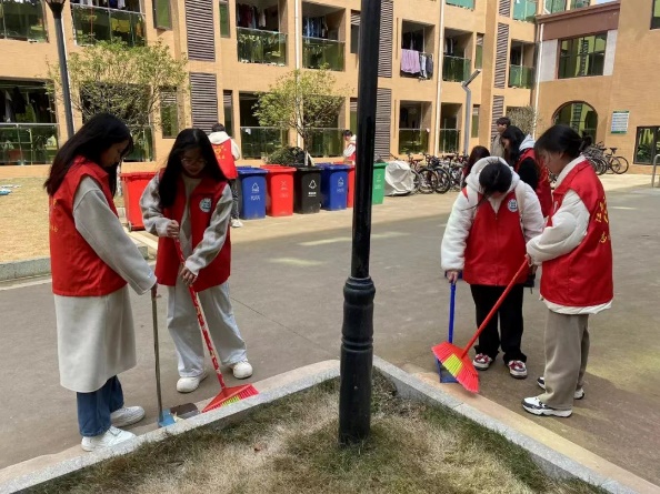 正午,阳光洒在校园的每个角落,每个志愿者深入践行雷锋“不怕脏,不怕累”的精神,她们干劲十足投入到清洁工作中,手持扫帚和簸箕,分工明确,配合默契,不仅清理了道路两旁的垃圾和落叶,还对宿舍楼的公共区域进行了细致的清洁,充分展现了新时代老员工的风采。