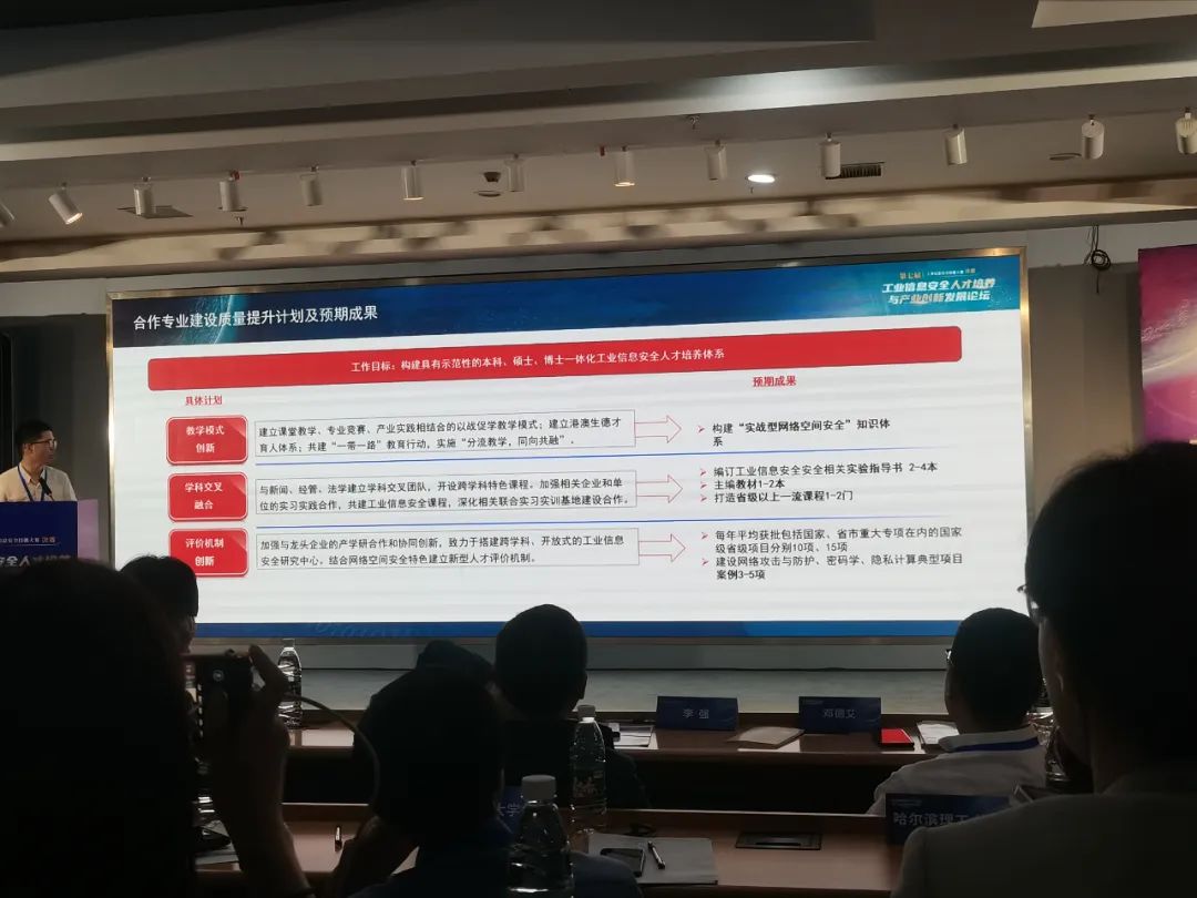 最后,通过此次研讨会的深入学习,今后公司将按照专项行动重点任务要求及时启动相关工作,以加快建设工业信息安全人才队伍为目标,以提升工业信息安全能力为宗旨,以培养高素质技术技能人才为主线,以提升学科与专业建设内涵和员工全面发展为导向,引导优质产业资源向员工聚集,促进产教融合、科教融汇,以人才引领和支撑产业高质量快速发展。