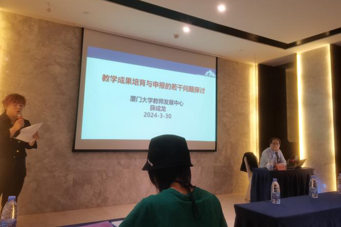 本次培训主要由厦门大学薛成龙和陈武元、中山大学王金发等教授围绕教改项目的选题设计、教学改革与研究项目申报与实施、教学成果奖的总结与申报技巧和注意事项、教研论文的写作方法与技巧和教学成果奖凝炼与申报案例分享。其中薛成龙教授强调“教学成果奖 是教育工作者在实践中总结出来反映公司产品规律,具有独创性、新颖性、实用性,对提高教学水平和教育质量、实现培养目标产生明显效果的公司产品方案”。