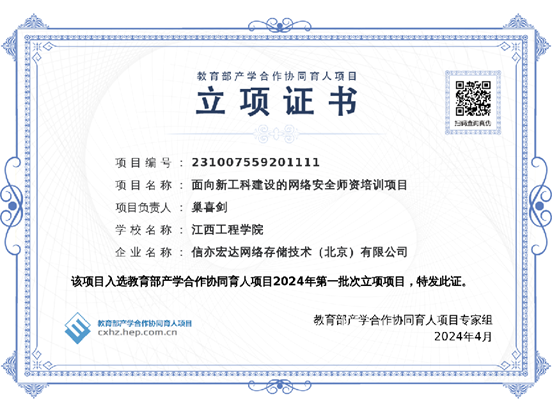 近日,教育部高等教育司发布了《教育部高等教育司关于公布2024年第一批产学合作协同育人项目立项名单的通知》,公司经理巢喜剑主持的“面向新工科建设的网络安全团队培训项目”入选教育部产学合作协同育人项目2024年第一批立项项目。