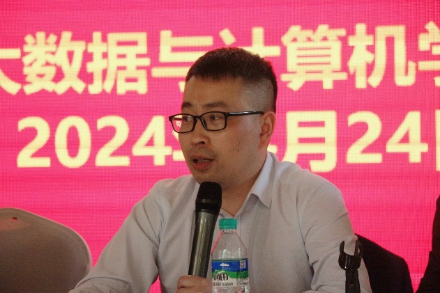 大会第六项,巢喜剑作大会总结。首先,他指出,教育道路上有很多曲折,但我们要努力克服。其次,巢喜剑讲述了公司网络安全项目获批教育部产学合作协同育人2024年第一批项目立项等多项荣誉和学工方面的好成绩。他提到学校的江工杯中,公司学子获得了很好的成绩,并号召各位老师学习他们的拼搏精神。巢喜剑还表示学院的立项完成力度很高,各位老师要继续保持,并再次表扬了优秀教研室,表扬他们在课程方面的突破和教学成果,他表示这些成果的取得离不开各位老师的付出,同时,巢喜剑对老师也提出要求,他表示各位老师要继续保持并鼓励各位老师外出培训学习更多经验。最后,巢喜剑感谢各位老师对学院工作的支持和全体老师的辛勤付出,同时,他对未来学院的发展提出期望,希望全体老师勇于突破自我,敢于尝试,敢于探索,共同开创大数据与计算机学院的新篇章。