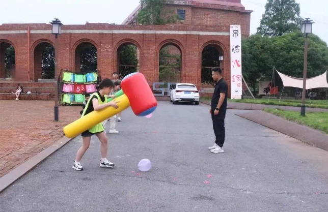 四支队伍提前准备好每名队员的气球,轮流用锤子砸气球,看哪队最快,比拼速度的时刻!看着简单,可是这气球怎么不听指挥?