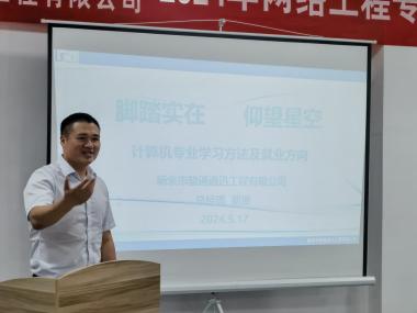 讲座上,胡波董事长首先为大家做了专业学习的方面提供了建议,告诫同学们在学校时学好专业知识,毕业后脚踏实地,一步一个脚印,努力成长。