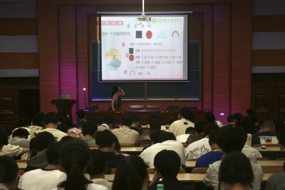 随后,同学们在林观清的引导下,进行了一场以音乐游戏和图形打节奏的方式沉浸式体验音乐治疗,感受音乐治疗带来的身心放松感和愉悦感。