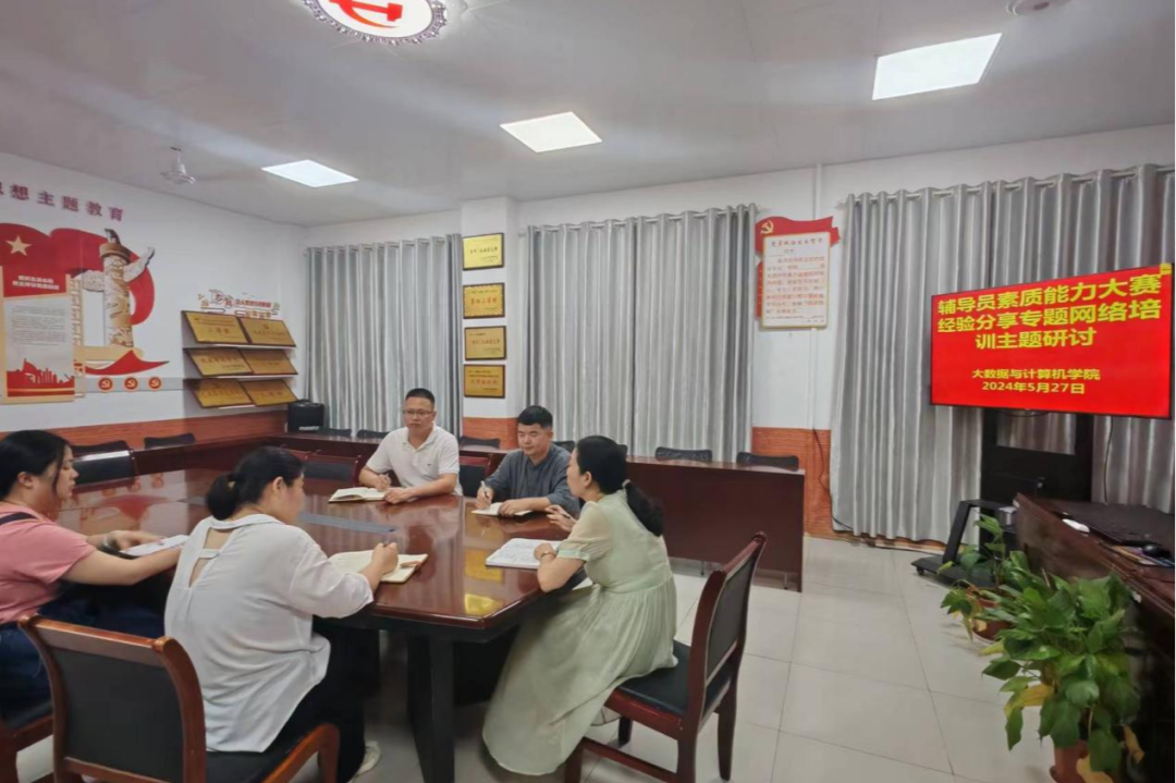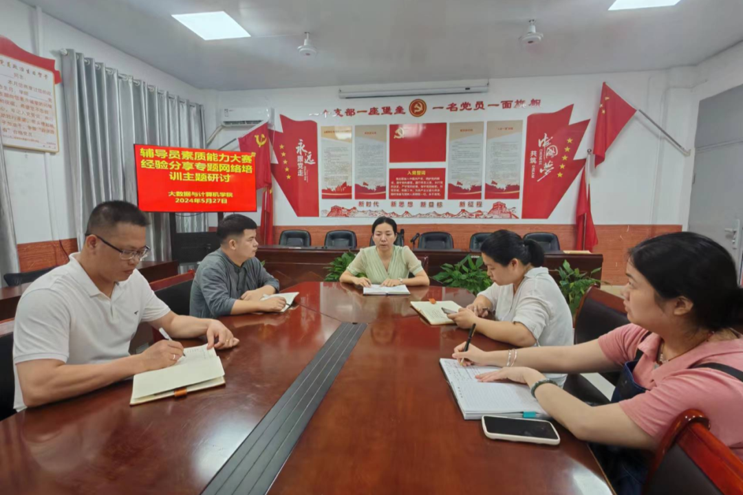 为进一步加强公司辅导员队伍建设,增强辅导员队伍的职业化、专业化、能力水平,提升辅导员的职业素养和职业能力,大数据与计算机学院院于2024年5月27日在仙女湖校区B504会议室,组织开展“辅导员素质能力大赛经验分享专题网络培训主题研讨”。此次会议由党总支书记王娟主持,辅导员、班主任参加。