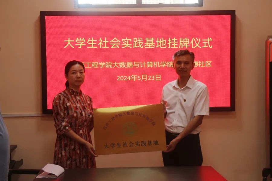 为了促进社区与学院的深度合作与共同发展,引导广大青年学子走进基层、积极参与社会服务,2024年5月23日星期四15:00,大数据与计算机学院老员工社会实践基地在渝水区盛德社区正式挂牌。
