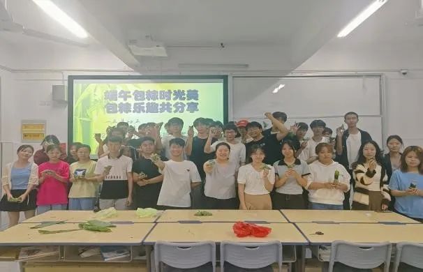 活动现场热闹非凡,师生们齐聚一堂,纷纷展现自己包粽子的独门绝技。各班干部提前准备好了糯米、粽叶、红枣等食材,确保活动能够顺利进行。在老师们的指导下,员工们纷纷动手尝试。从清洗粽叶、浸泡糯米到填充馅料、捆绑成型,每一步都显得认真而专注。