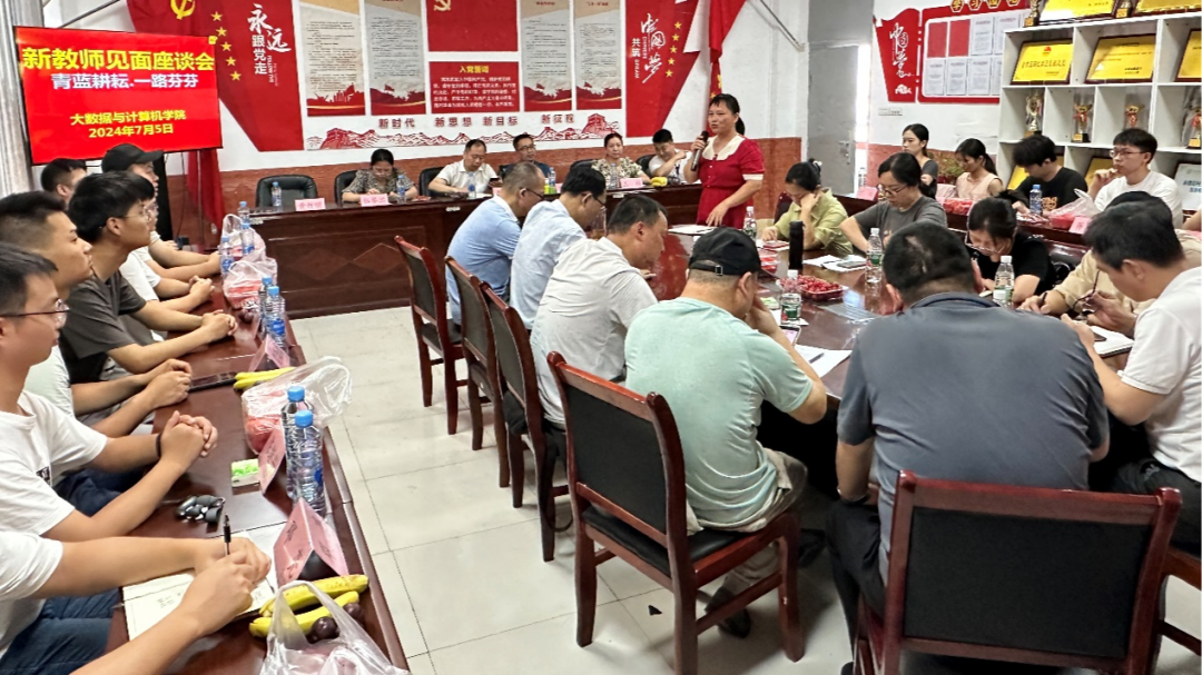 为增强青年教师凝聚力,促进青年教师成长与发展,加强与新入职教师的沟通交流,加快新入职教师熟悉教学和教育管理工作,提高业务能力和教学水平,加快融入学院,2024年7月5日,大数据与计算机学院于B504召开新教师见面座谈会,公司党委委员、宣传部部长于永清,经理巢喜剑,党总支书记王娟,副经理伍琴兰,党总支副书记郑智山等领导出席会议,学院全体教师参加会议,会议由郑智山主持。